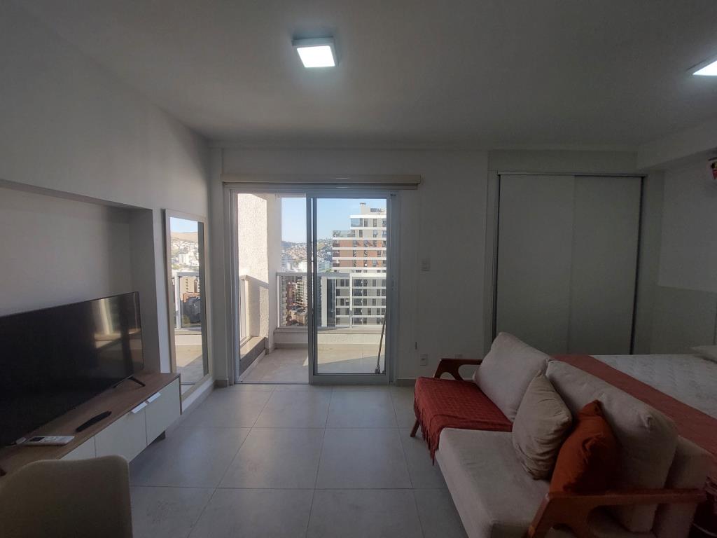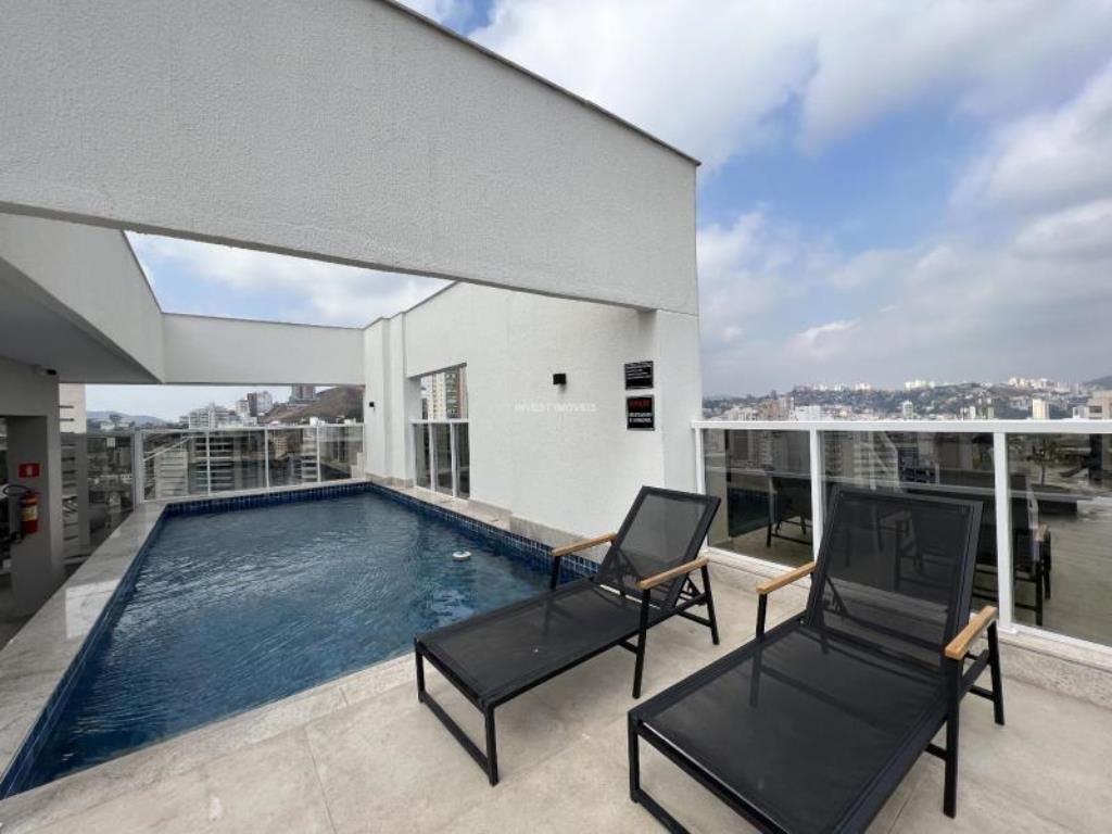 Espetacular quarto e sala separado no Centro; pronto para morar; cozinha toda mobiliada, bancada, fogão de indução, mesa com cadeiras; sala com SMART TV, rack sofá; quarto com armário embutido, cama box com baú; varandão com vista super agradável de frente para Av Itamar Franco; área de serviço externa com tanque; ao lado do Colégio Stella Matutina; ensolarado; vista do Cristo; comércio ao redor; banheiro todo completo com piso porcelanato, pia granito, gabinete, espelho e box blindex; interfone.
