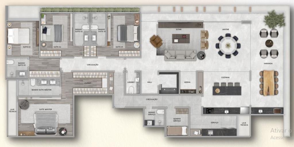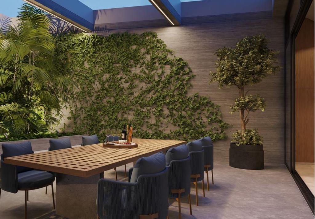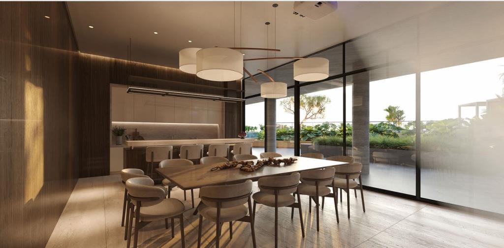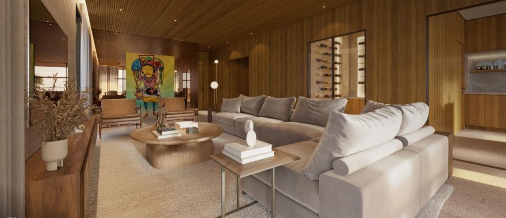 Apartamentos de 270 m² com 4 suítes sendo a suíte master com closet, varanda gourmet com 39 m², adega, hall privativo e 3 vagas de garagem com um ponto de recarga para veículos elétricos.