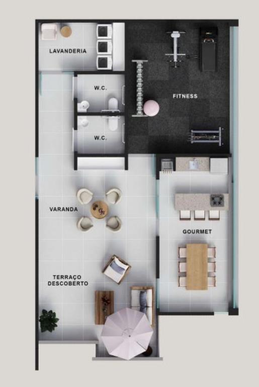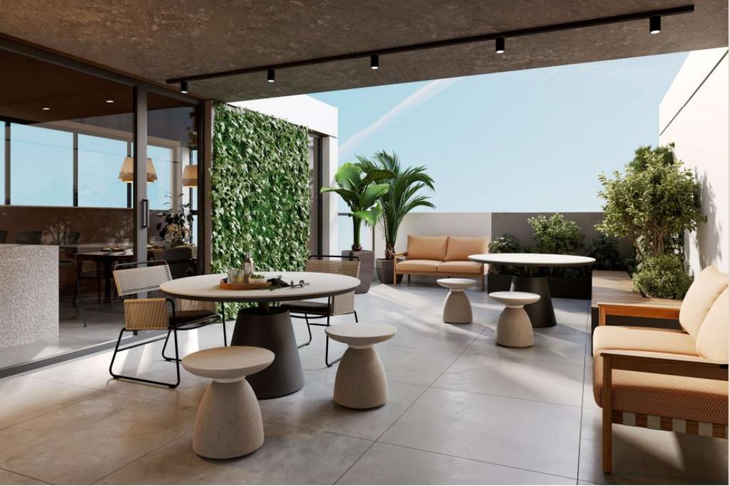 No rooftop, os moradores terão acesso a um espaço de lazer completo, com varanda ampla, terraço descoberto, área gourmet, espaço fitness, lavanderia compartilhada e banheiros feminino e masculino.