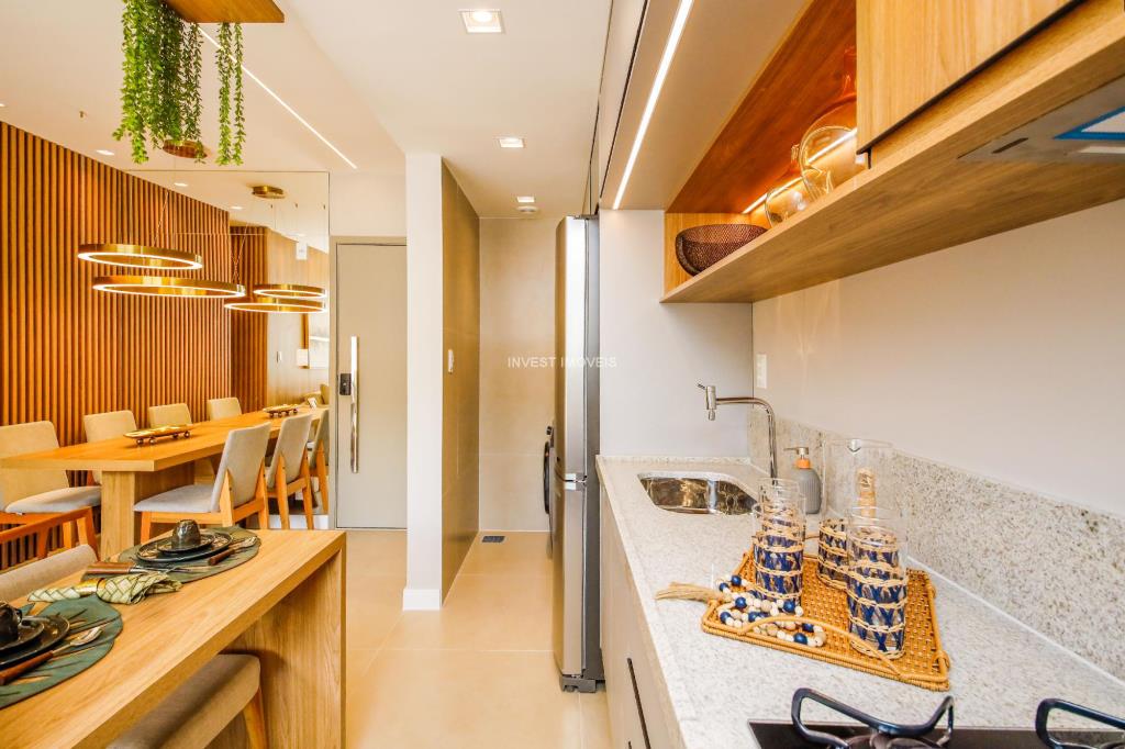 Os apartamentos tem 2 quartos, todos com suíte, banheiro social, uma boa sala com cozinha integrada, varanda gourmet e área de serviço.