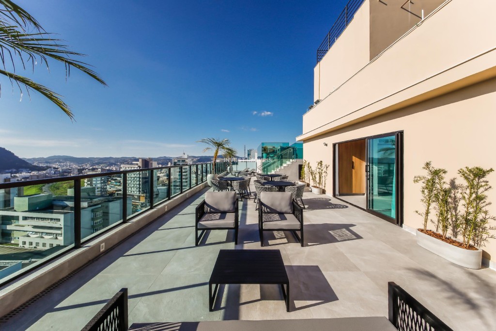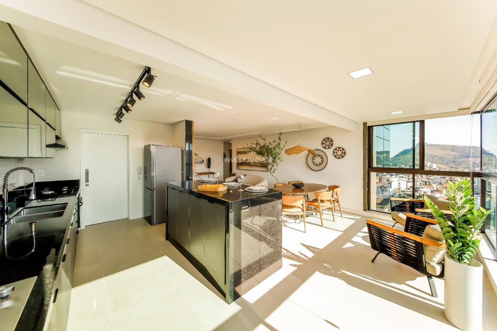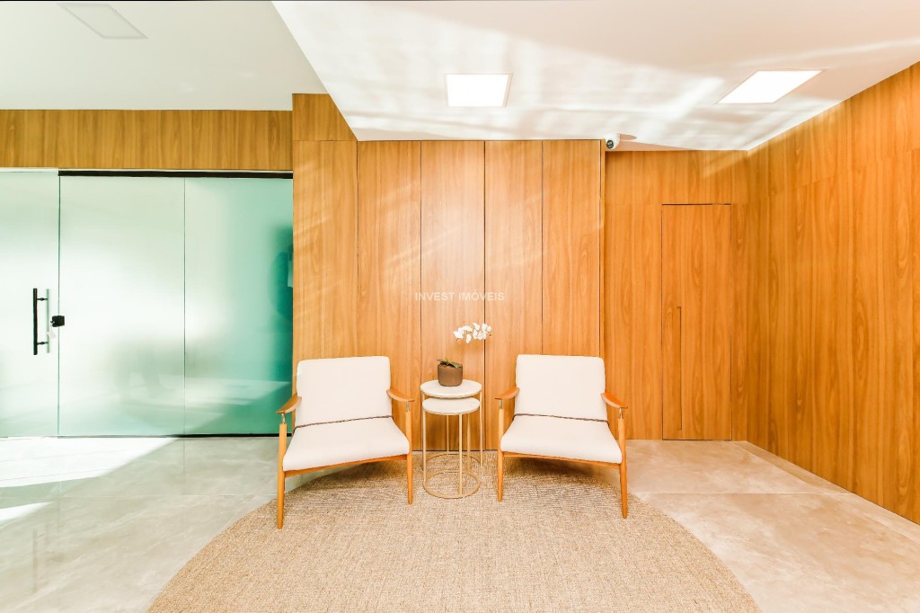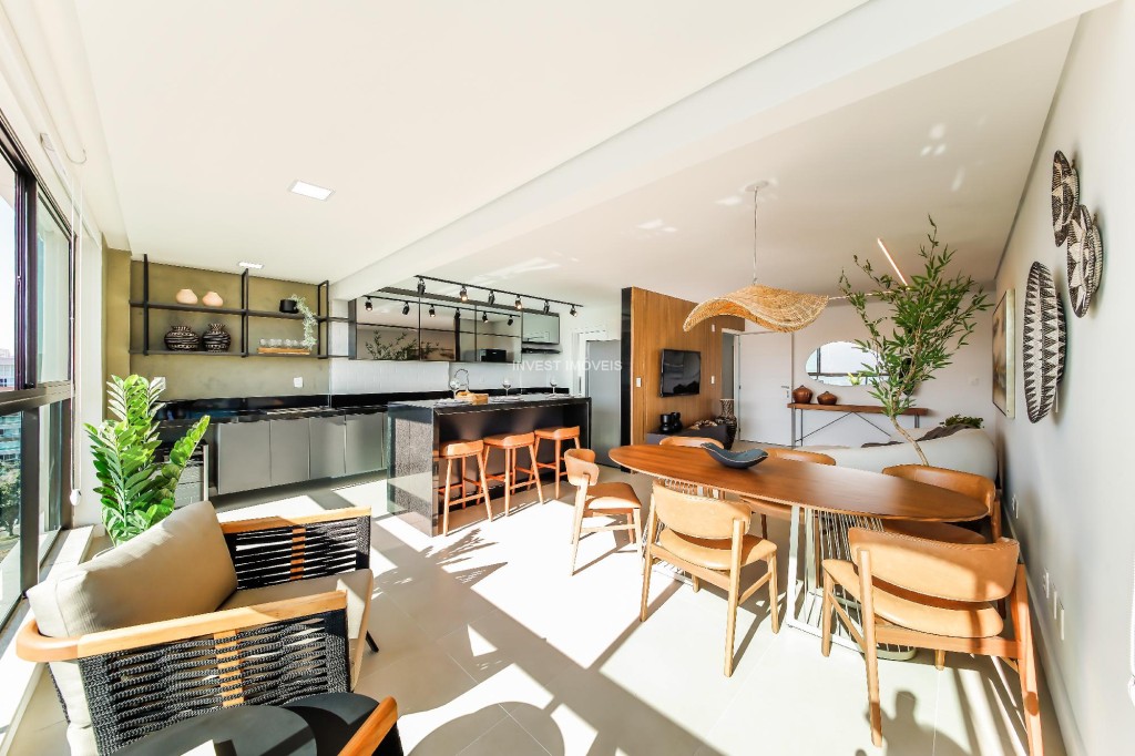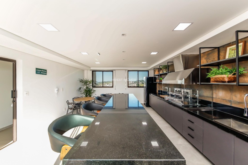 São 34 unidades, todas com uma ampla sala 2 ambientes já integrada com a varanda gourmet, fechada com cortina de vidro, e a cozinha com uma bonita ilha.