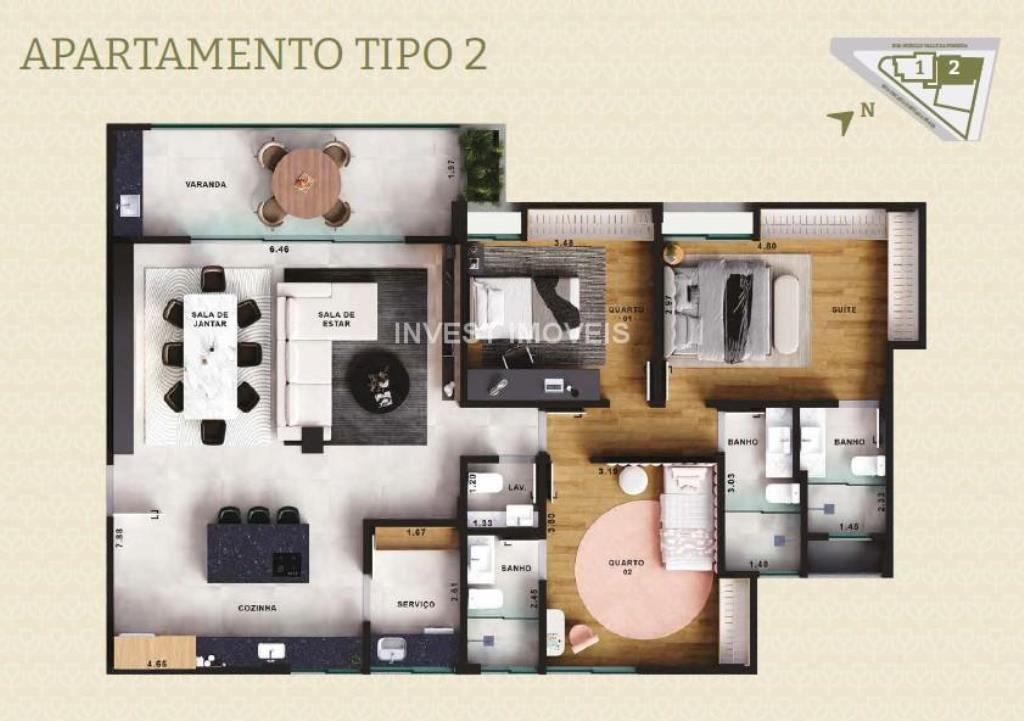 Excelente apartamento de 3 quartos, sendo 2 suítes, em localização privilegiada e com todo o conforto e sofisticação que você procura.