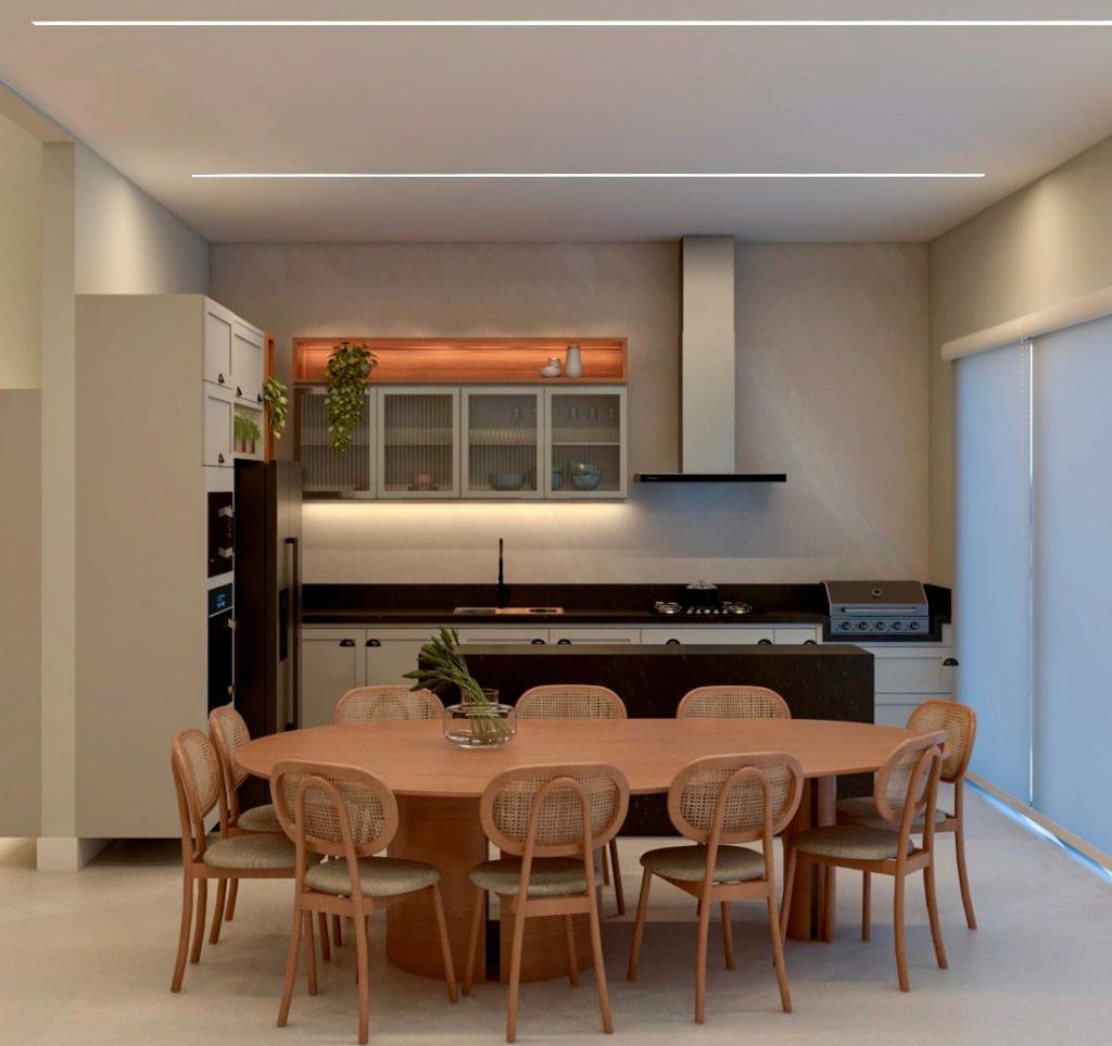 Implantada em um terreno de 330 m², a residência contará com 238 m² de área construída, distribuídos de forma inteligente. No pavimento térreo, são 2 vagas de garagem e um depósito versátil, já com preparação para ar-condicionado, podendo ser facilmente convertido em quarto ou escritório. No pavimento principal, o projeto impressiona com sala de estar com pé-direito duplo, lavabo, 1 suíte master com varanda e 2 semi-suítes, além de cozinha integrada, lavanderia e um completo espaço gourmet com char-broil, conectado à piscina iGUi.