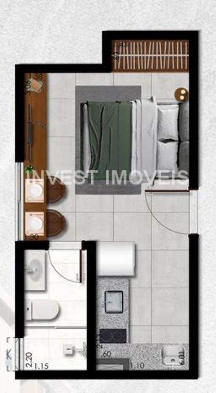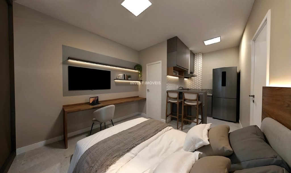 Apartamento tipo studio com ou sem garagem composto por sala, cozinha, banheiro social, varanda, elevadores, rooftop panorâmico com 2 áreas gourmet, piscina com deck, lavanderia Omo, coworking, terraço, solarium; ótimo acabamento.