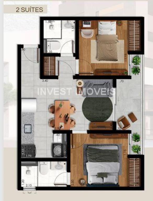 Apartamento de 2 quartos com 2 suites, sala para 2 ambientes com varanda, cozinha, área de serviço, 1 vaga de garagem para carro e 1 para moto, elevadores, rooftop panorâmico com 2 áreas gourmet, piscina com deck, lavanderia Omo, coworking, terraço, solarium; ótimo acabamento.